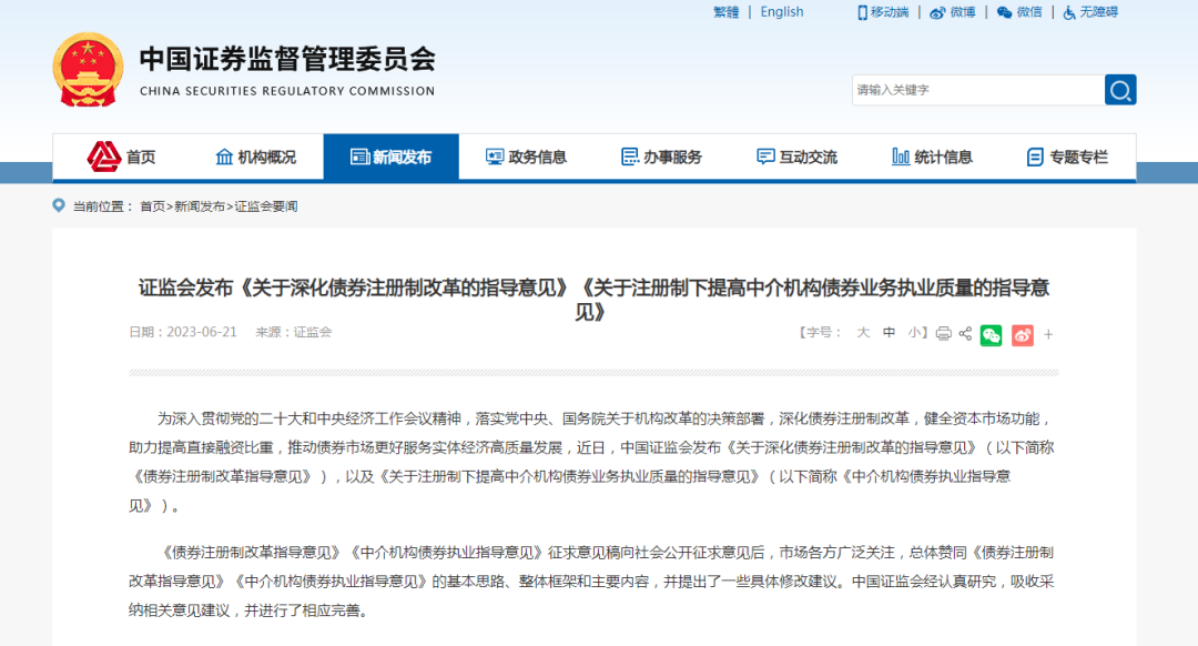 中國證監(jiān)會(huì)發(fā)布指導(dǎo)意見,深化債券注冊(cè)制改革